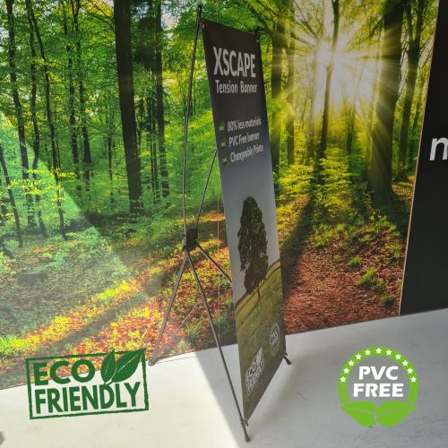Using 80% less materials compared to traditional roller banner stands plus PVC Free print. The simple X tension system allows users to exchange graphics in seconds making this a super versatile and cost-effective banner display, while its small footprint makes it perfect for use when space is at a premium.